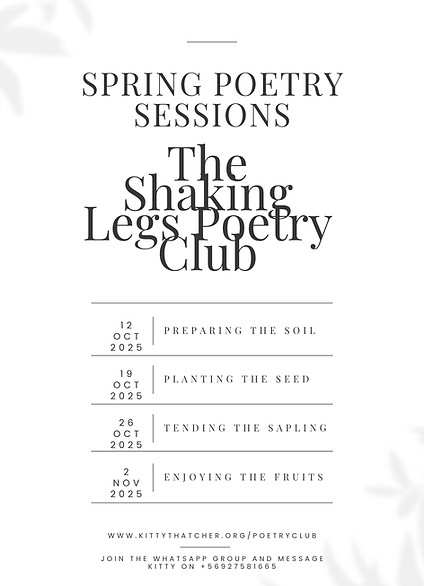 The idea for the 'Shaking Legs Poetry Club' was birthed from much enthusiasm from members of our walk and talk therapy group. I have run a poetry club before in Australia with young people in the mental health service 'Headspace' so it was with much joy that we discovered that outside of walking many people have found reading and writing poetry to be a space for peace, reflection, and energy in their lives. In conversation around what it was that poetry meant to people, there was the idea that poetry manages to capture things in our everyday lives that can often go unnoticed. It can turn black and white days into vivid memories filled with colour. As one founding poetry club member, the published poet Hanna Buklieieva, born in Ukraine and now residing in Chile wrote in a poetic response to the conversation: